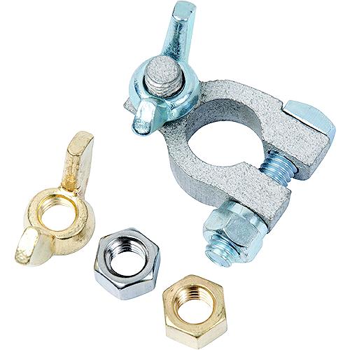 | 639-260322 | Ancor Battery Terminal Set of One Wing Nut Style Yellow Brass Nut for 5/16" Negative Stud and One Tin Copper Battery Terminal for 3/8" Positive Stud |