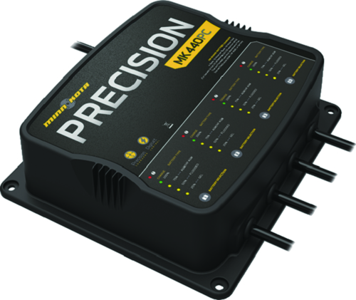 3 YEAR WARRANTYMinn Kota®'s Precision On-Board Battery Chargers automatically clean and condition the battery to extend run time and battery life. 15-amp Precision Chargers are half the weight of traditional on-board chargers. One of the few chargers that allows the user to independently select and charge a different type of battery in each bank: flooded lead acid, gel, AGM (Absorbed Glass Mat) and HP (High Performance) AGM battery types. This allows you to safely, efficiently, and quickly charge the ideal battery type for each application onboard whether it's for starting, trolling motors, house, windlass, or any other function; no more settling for second best! An intuitive LED Display for each bank on the charger that gives an independent readout of connection status, power status, state of charge and selected battery type. The chargers are also short circuit, reverse polarity and ignition protected.