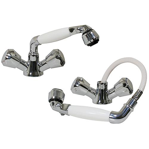 Scandvik 46011 Standard Combination Pull-Out Faucets And Shower White Handle With 5' White Nylon Hose (Includes Water Conservation Valve) - 46011P - 390-46011Pf1