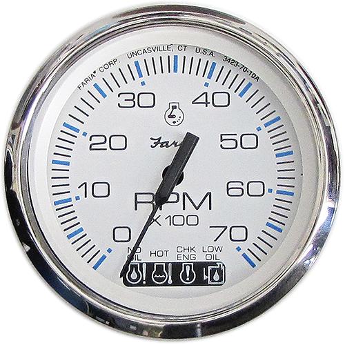 | 678-33840 | Faria Chesapeake SS White 4" Gauge - Tachometer, 7000 gas Outboards |
