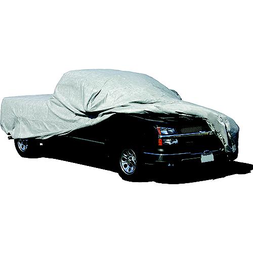 Pick-up truck covers protect your pick-up truck from the elements. Ensures maximum breathability to prevent mold and mildew. Triple layer SFS Aqua-Shed® beads water on contact affording maximum resistance to high humidity and rainfall in addition to protection against UV rays. Strap and buckle attachments and bunny-ear cinching system allows for a custom look. Reinforced, elasticized corners resist tears and snags. Includes storage bag for easy stowing of cover when not in use. Features SFS Aqua-shed beads water on contact100% BreathableElasticized front and rear corners for snug fitGray