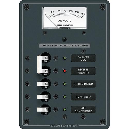 Blue Sea Systems 8043 Traditional Metal Circuit Breaker Panel - Ac Main + 3 Positions, Ac Voltmeter - 8043-Bss - 661-8043F1