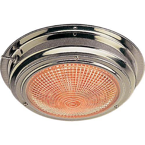 These LED Day/Night Dome Lights are constructed of corrosion resistant stamped 304 stainless steel. Prewired with integral on/off/on toggle switch and two separate light circuits. One circuit uses a clear bulb and the other circuit uses a red night vision bulb. With the low current consumption of 0.068 amps @ 12 volts, they give off very little heat and have extremely long service life. These vibration resistant LED Dome Lights feature 15 white and 5 red LEDs per light. Surface mounts with three #6 RH fasteners (not included).