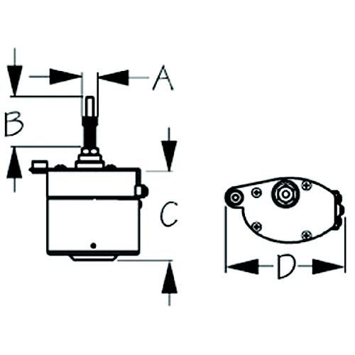 Standard Wiper Motor for interior/protected locations. Sweep angle is preset at 80° or 110°, but can be reset to 40°, 50°, 60°, 70°, 80°, 90°, or 110°. Corrosion proof powder coated all aluminum housing with stainless steel base plate, shaft, and knurled drive nut. Adjustable right or left-hand park, factory preset for left-hand park. Powers up to a 14" arm/blade combination (21" total length) using standard wiper arms. Same footprint as competitive standard wiper motors. Black only. CE approved. 3-year warranty.