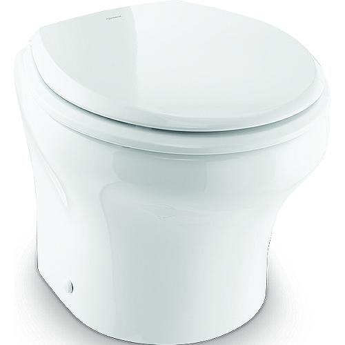 Macerator toilet with an easy-to-install, and easy-to-use fixture. The electric toilet and flush control panel are the only components to install, no external control module is necessary. 8100 series macerator toilets provide three flush settings to help manage water use. Flushes are controlled by how long the flush button is pressed, average consumption is very low, as the macerator moves the waste with minimal water needed. This means the MF 8120 has a very low impact on the fresh water consumption onboard, allowing you to stay out for longer. This model benefits from an angled back and small footprint make it ideal for tight spaces, while the solid enameled wood seat ensures user comfort. Compatible with a remote holding tank.