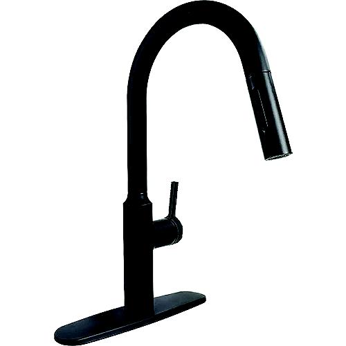 800-PF231780800-PF231780 8" Premium Slimline Single Handle Pull Down Kitchen Faucet, Matte Black w/Gold Handle