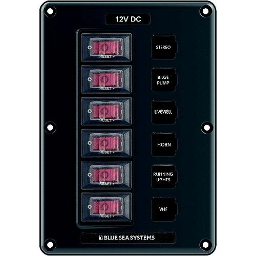 Blue Sea 4322 Water-Resistant Circuit Breaker Switch Panel, 6 Position - 4322-Bss - 661-4322F1