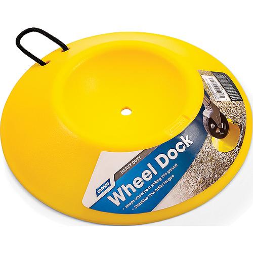 Prevents trailer tongue wheel from rolling on the pavement or sinking into soft ground. Heavy duty, durable wheel dock is easy to store and transport.